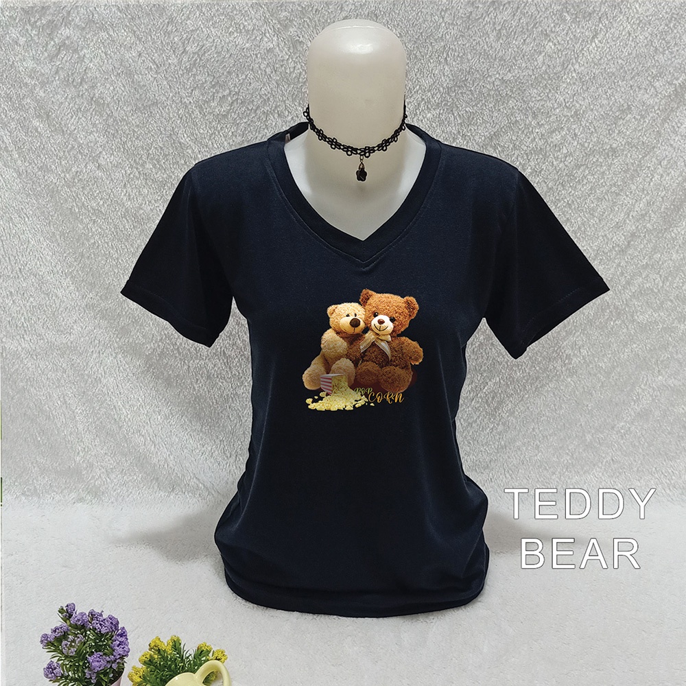 Produk Baju kaos atasan wanita vneck pakaian wanita distro kasual teddy Bear Popcorn Ld 84-100 Fit body SR 02 ini harganya adalah Rp. 24.500,00 dan saat ini sedang Diskon ,